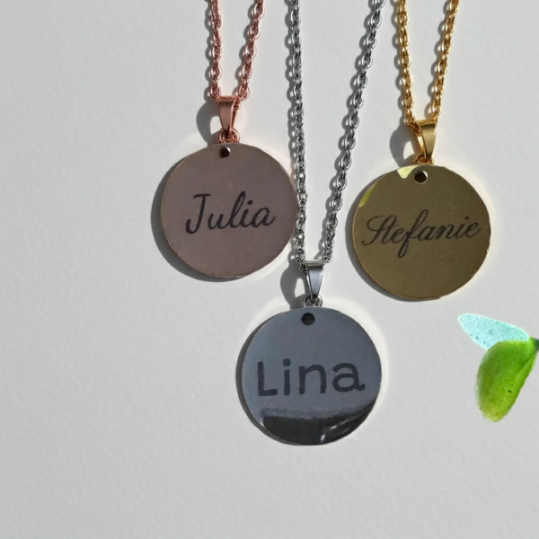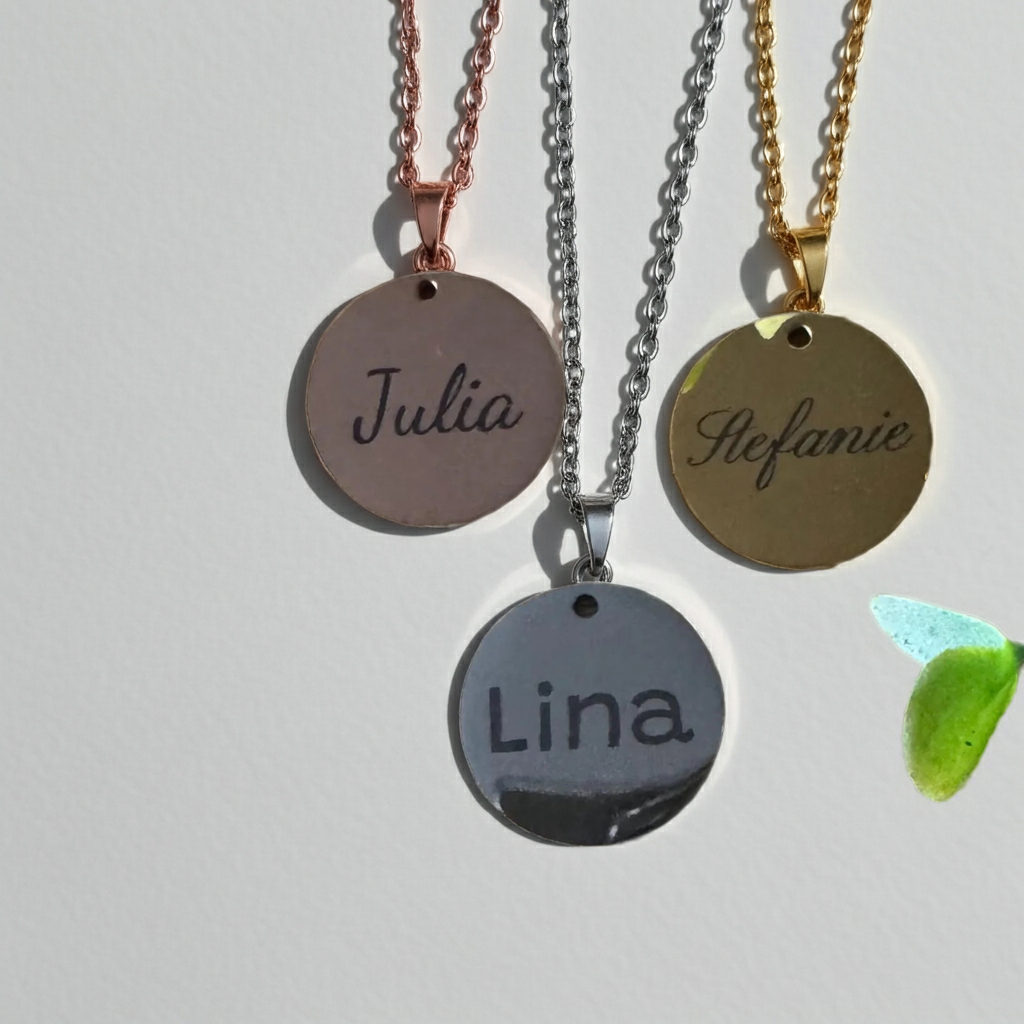 Mach deinen Schmuck einzigartig! Unser toller Kettenanhänger wird individuell mit deinem Namen oder einem kurzen Wort graviert.